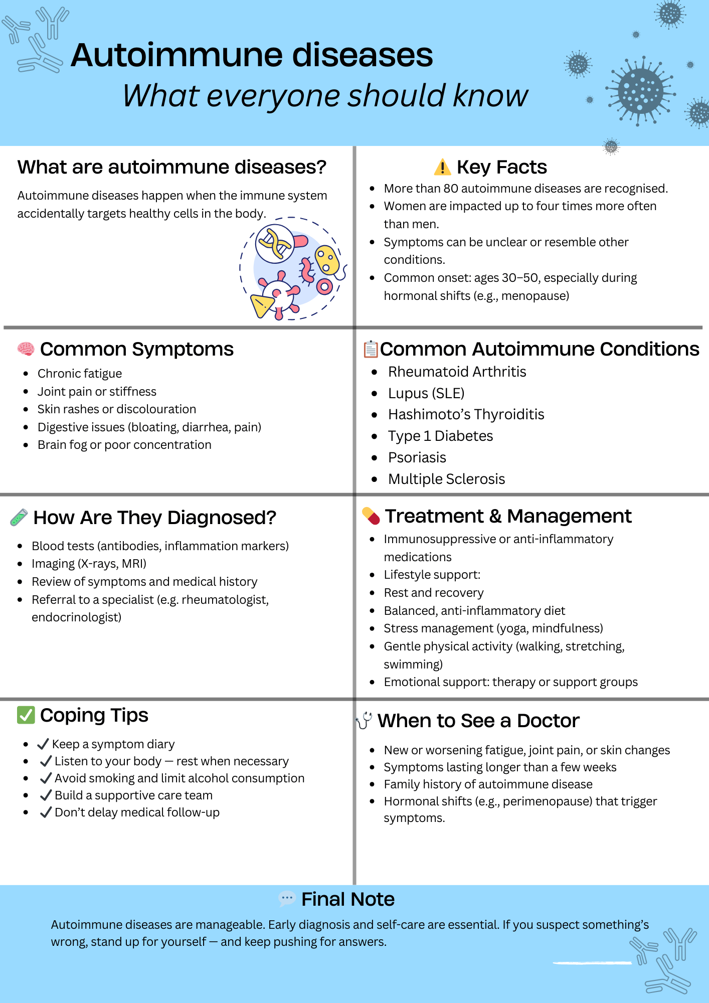 This project began as a long-form medical article, which I researched and wrote. Then I adapted it into a blog post (short, engaging, patient-friendly) and finally into a fact sheet (visual, easy to scan, quick reference). I used AI tools to assist with formatting and style adjustments, while ensuring medical accuracy and clarity were maintained.